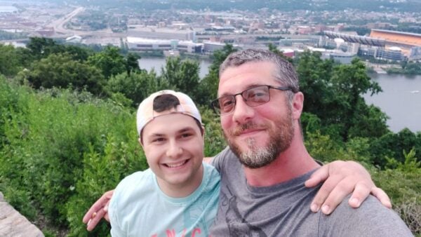 Joseph Thomas avec son fils avant sa persécution par le régime Biden.