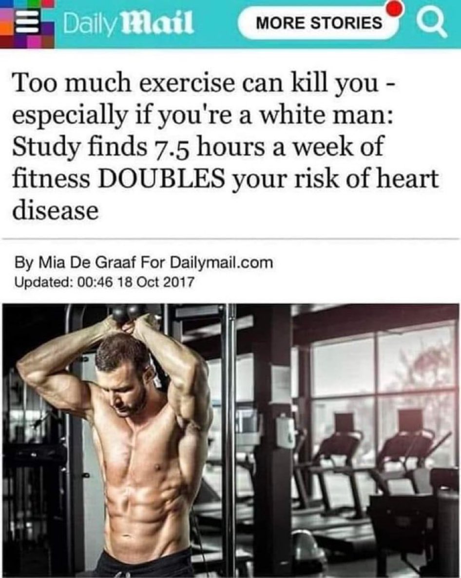 5 Faire de l’exercice : Une étude a révélé que l’exercice peut doubler le risque de maladie cardiaque chez l’homme blanc. 🤡🌎